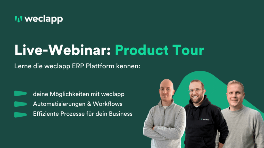 Ja, es sind auch individuelle Webinare möglich. Bei Interesse melde dich gerne per Mail an sales@weclapp.com oder rufe an unter +49 (0)9321 9064 1888