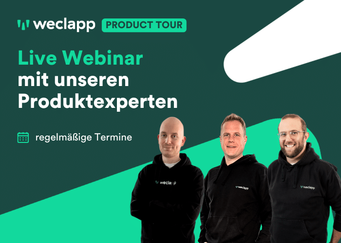 Ja, es sind auch individuelle Webinare möglich. Bei Interesse melde dich gerne per Mail an sales@weclapp.com oder rufe an unter +49 (0)9321 9064 1888.